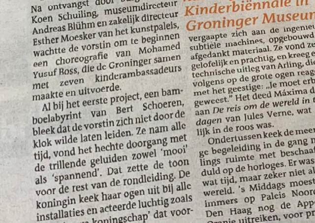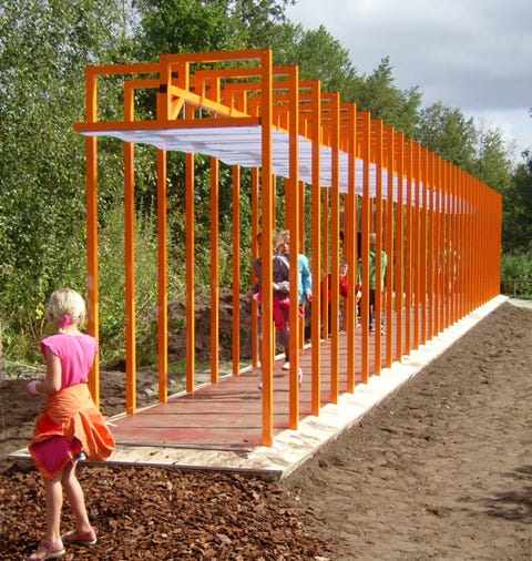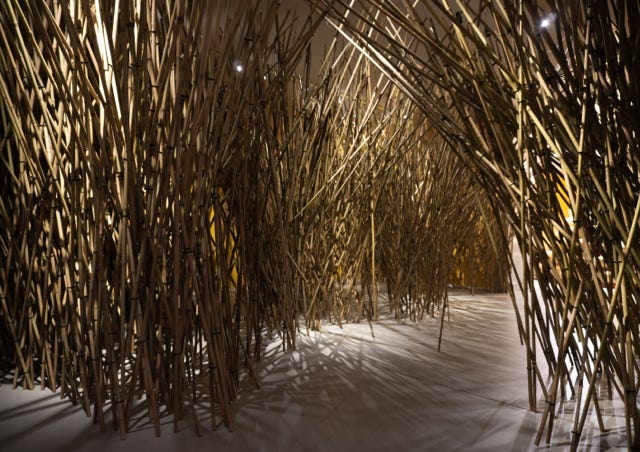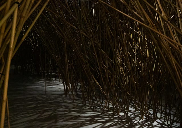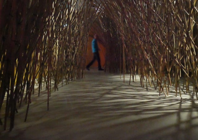 The Bamboo Shiver Forest. A room in the museum is filled with a few thousand bamboo sticks, criss-crossed together. There is a labyrinth through this stick forest that you can wander through. There are vibrating sticks in the forest. These will vibrate as soon as you touch them. Light and shadow, vibrating sound and silence alternate and visitors can experience the beauty of chaos. If you come into a strange, unusual environment you can be surprised. Your senses are stimulated and you are challenged to interact, to participate. You have to discover and explore by going deeper into the forest. With the shivering forest, visitors can decide for themselves, while playing, how far they let the chaos go.